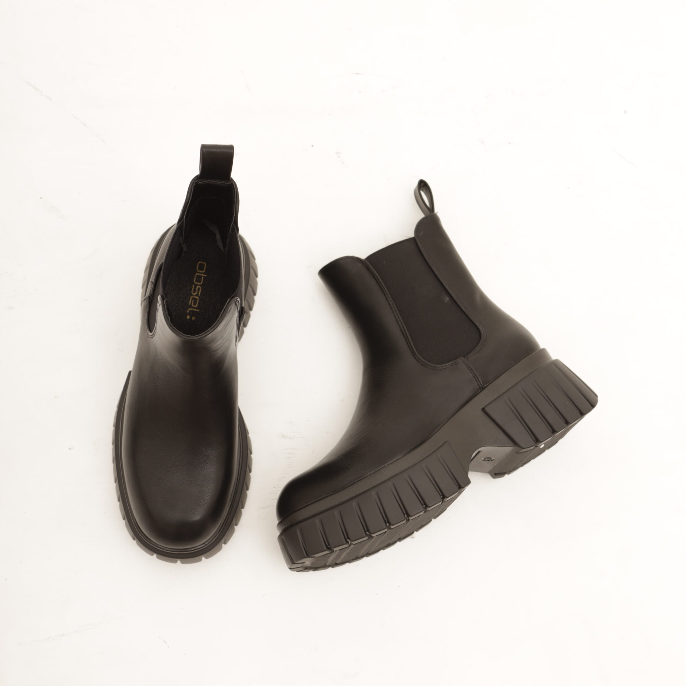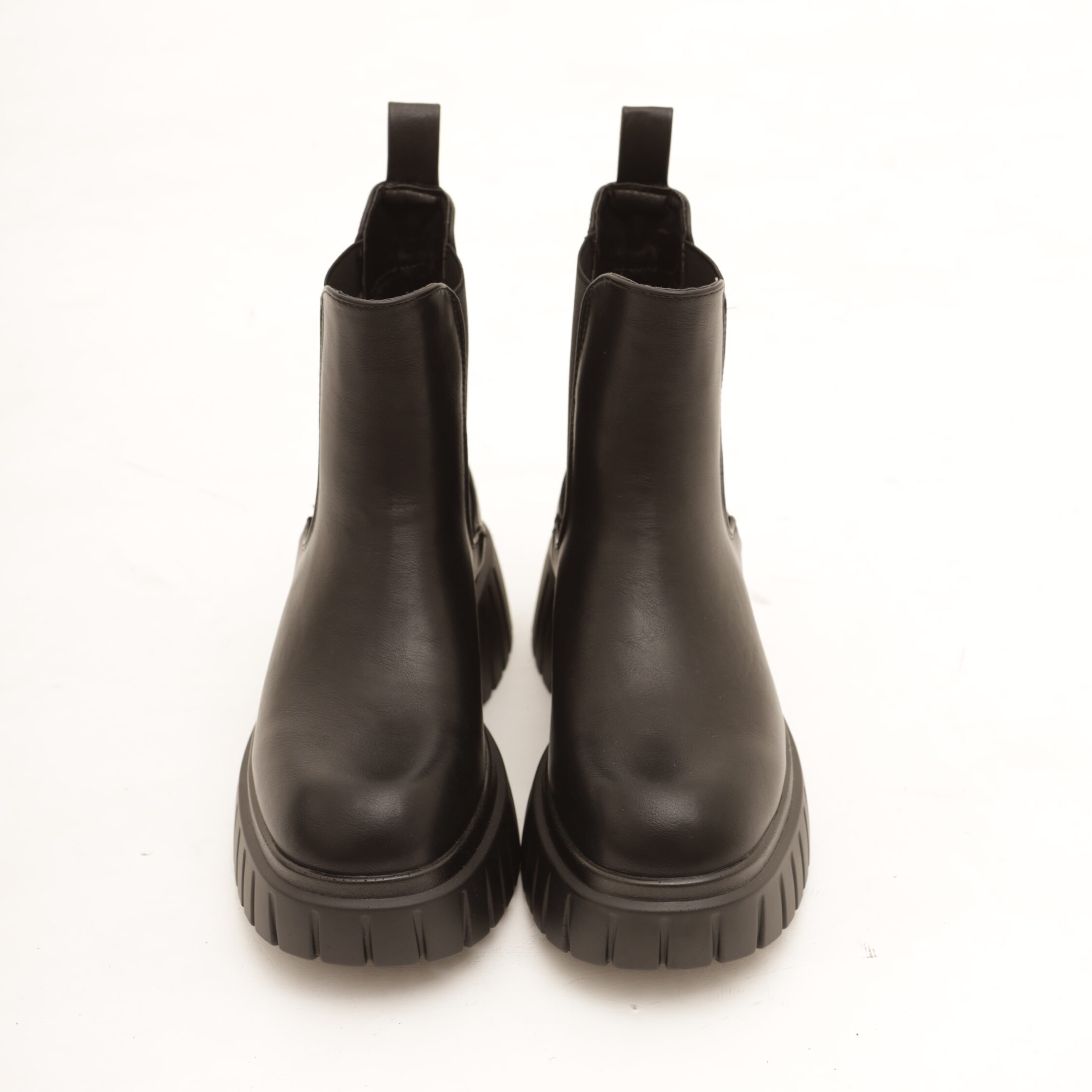 Modello Stivaletto realizzato in eco-pelle Nero. Elastici laterali per una calzata confortevole. Disponibile anche nel colore Tortora.