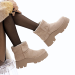 Modello Stivaletto realizzato in simil-camoscio Tortora. Disponibile anche in Nero.