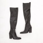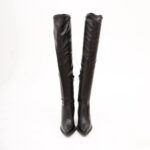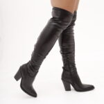 Modello Texano alla coscia realizzato in eco-pelle Nero. Modello molto aderente. Chiusura con zip nella parte interna laterale. Disponibile anche nel colore Bordeaux.