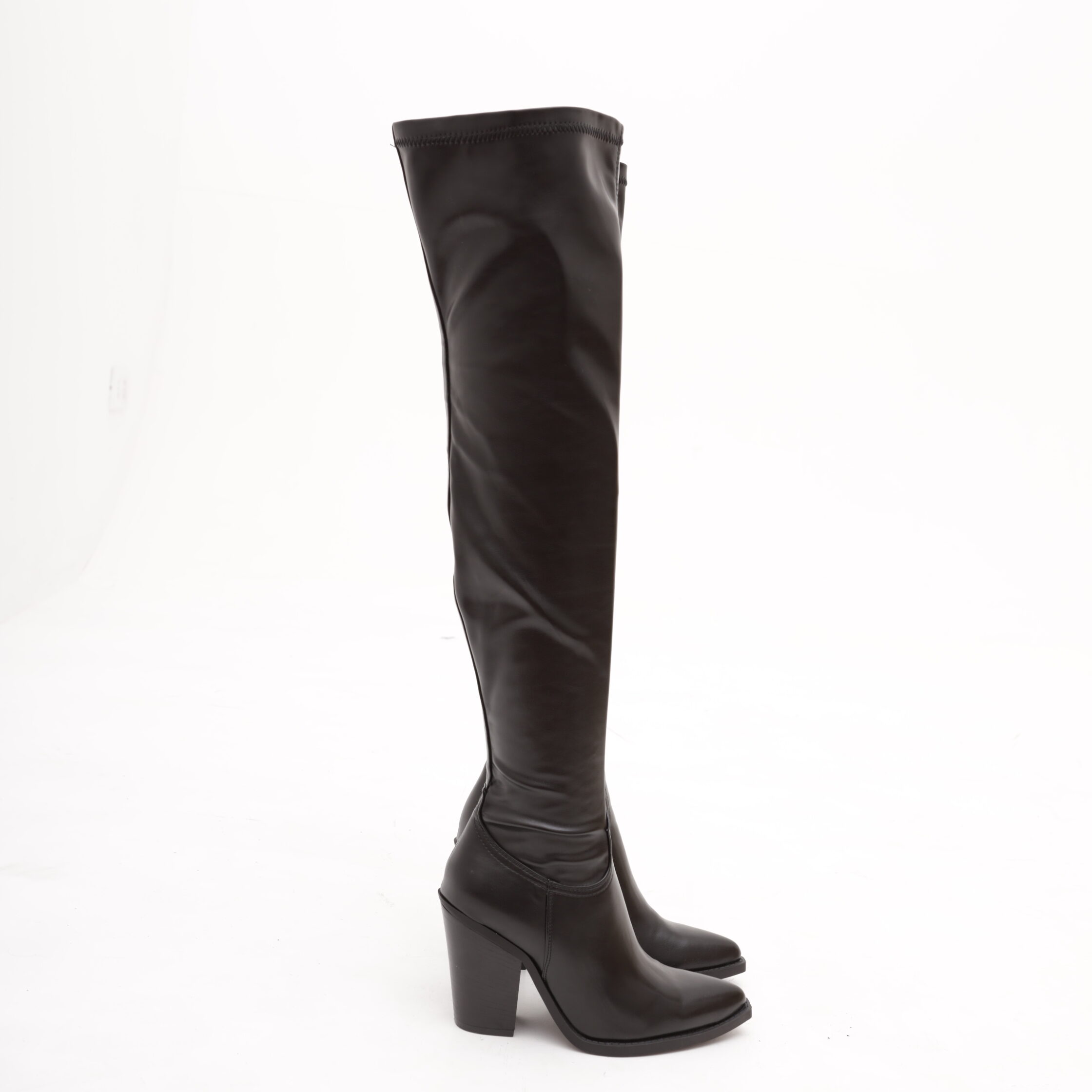 Modello Texano alla coscia realizzato in eco-pelle Nero. Modello molto aderente. Chiusura con zip nella parte interna laterale. Disponibile anche nel colore Bordeaux.